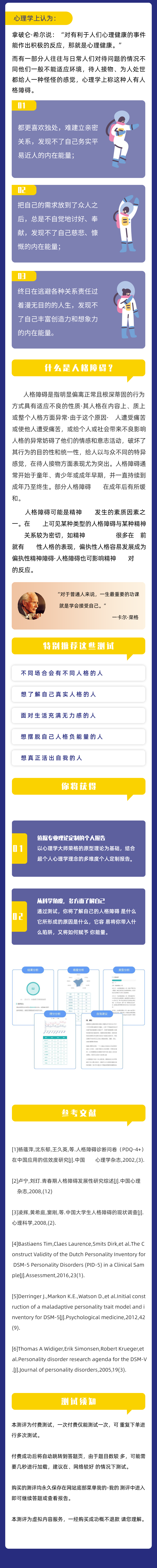 本测试是一项108的自我筛查工具,主要用于确定人格障碍的主要特征或可能存在的特征,其产生的报告结果符合DSM-IV轴II诊断标准,它被广泛应用于各国的临床实践和研究项目中